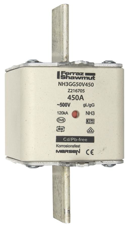 Lindner Z216705 Mersen NH3GG50V450 Sicherungseinsatz NH gG Größe 3 AC500V 450A sfü Kombikennmelder