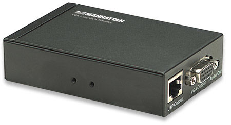 <p>Der Manhattan VGA Cat5/5e/6 Extender hilft die VGA und Audio Signale von der Quelle zu einem entfernten Monitor oder Lautsprechern über Cat5/5e/6 Kabel zu verlängern.</p>
