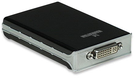Der Artikel MANHATTAN 179133 Hi-Speed USB 2.0 DVI Konverter Unterstützt bis zu 6 zusätzliche Monitore ist derzeit auf Lager