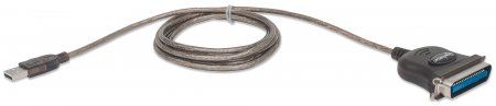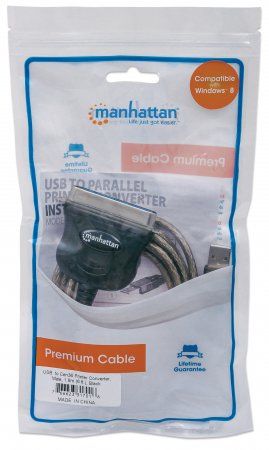MANHATTAN 317016 Full-Speed USB auf Cen36 Parallel-Druckerkonverter USB-A-Stecker auf Cen36-Stecker, 1,8 m, silber, Polybag-Verpackung