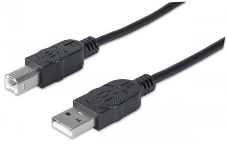 Der Artikel MANHATTAN 333382 Hi-Speed USB B Anschlusskabel USB 2.0, Typ A Stecker - Typ B Stecker, 480 Mbps, 3 m, Schwarz ist derzeit auf Lager