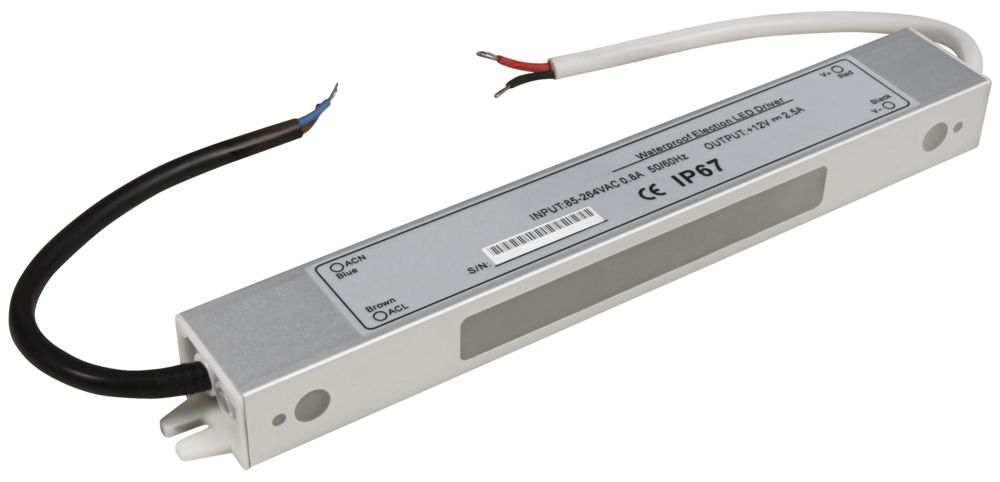 Der Artikel LED-Trafo McShine, elektronisch, IP67, 1-30W, Ein 85~264V, Aus 12V, wasserfest ist derzeit auf Lager