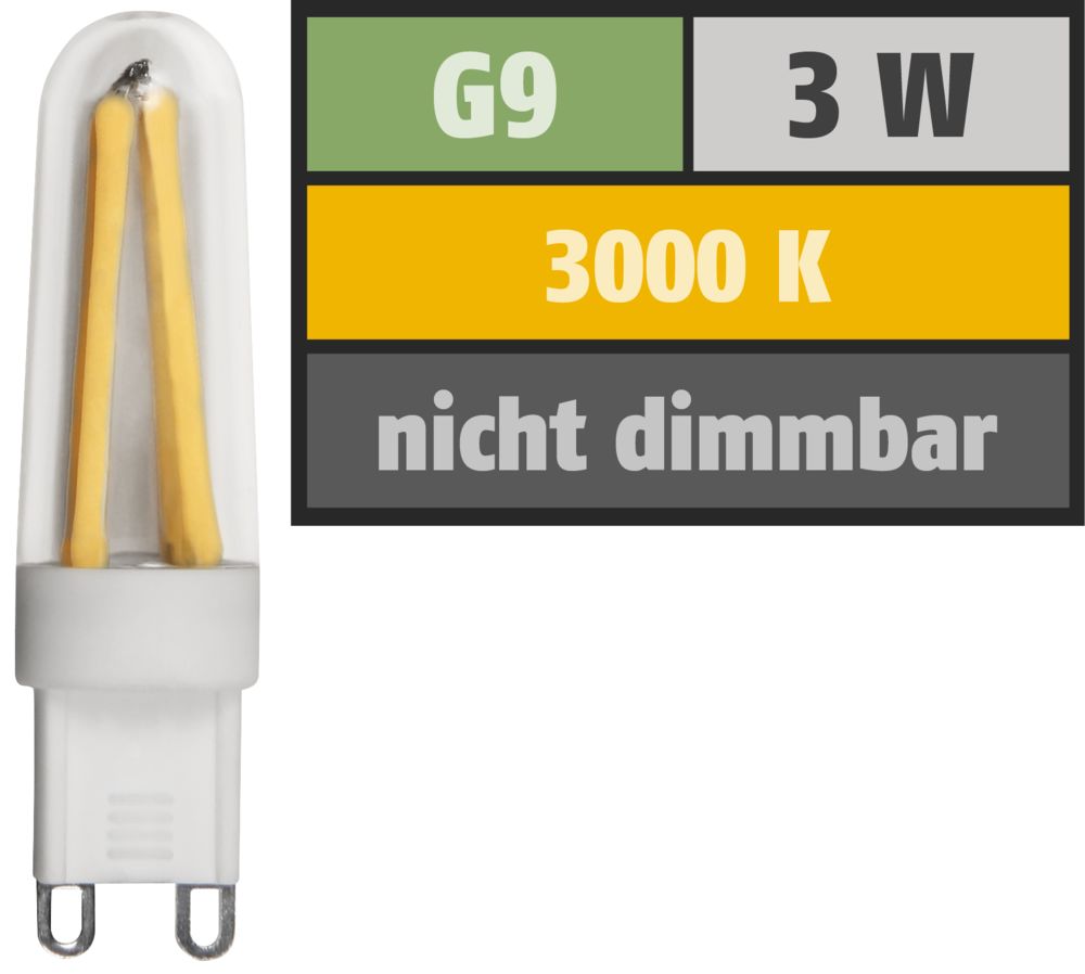 Der Artikel LED-Stiftsockellampe Filament McShine ''Silicia'', G9, 3W, 300 lm, warmweiß ist derzeit auf Lager