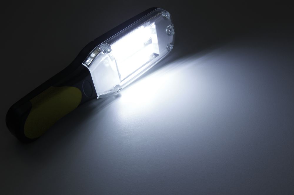 Der Artikel LED-Arbeitsleuchte McShine ''AL-10922 cm ( 4300 Zoll ), LiIon-Akku, 3W, 400 lm, Magnet und Haken ist derzeit auf Lager