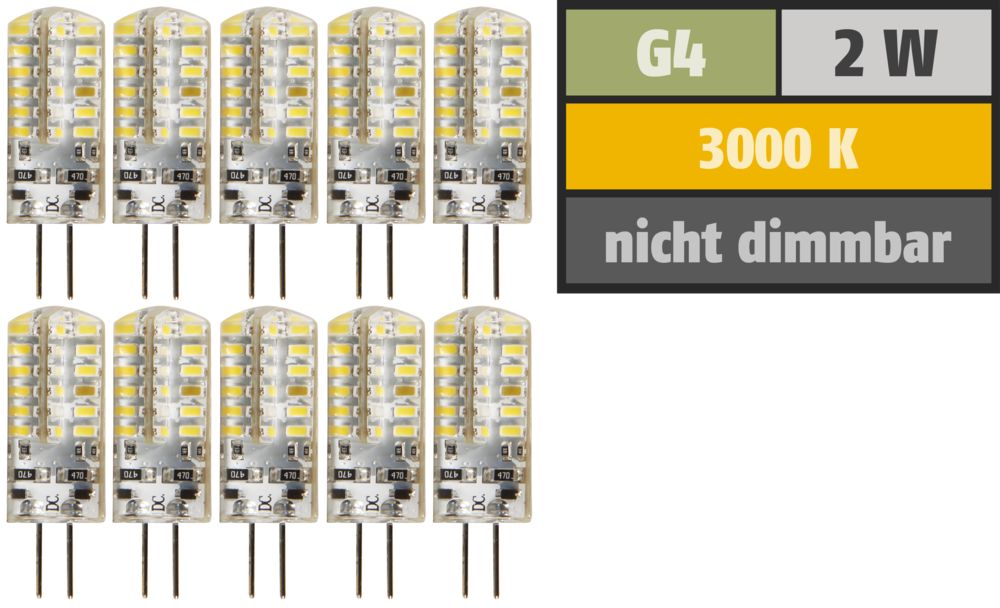 LED-Stiftsockellampe McShine ''Silicia'', G4, 2W, 160lm, warmweiß, 10er-Pack