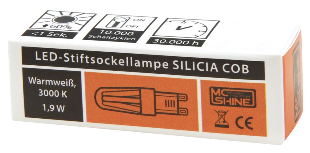 Der Artikel LED-Stiftsockellampe McShine ''Silicia'', G9, 1,9W, 180lm, warmweiß, 5er-Pack ist derzeit auf Lager