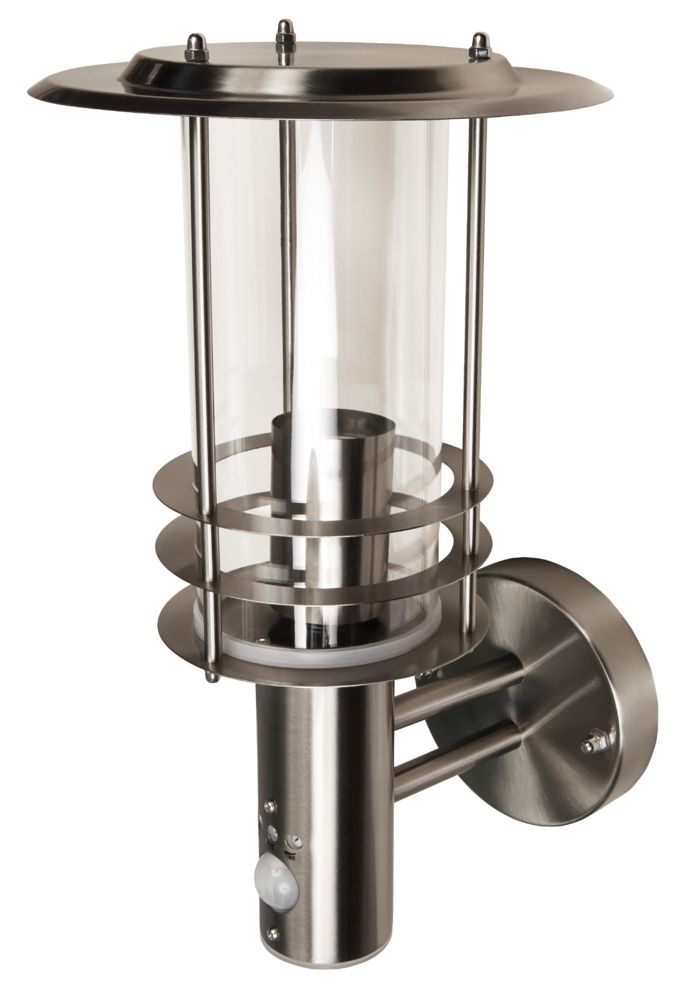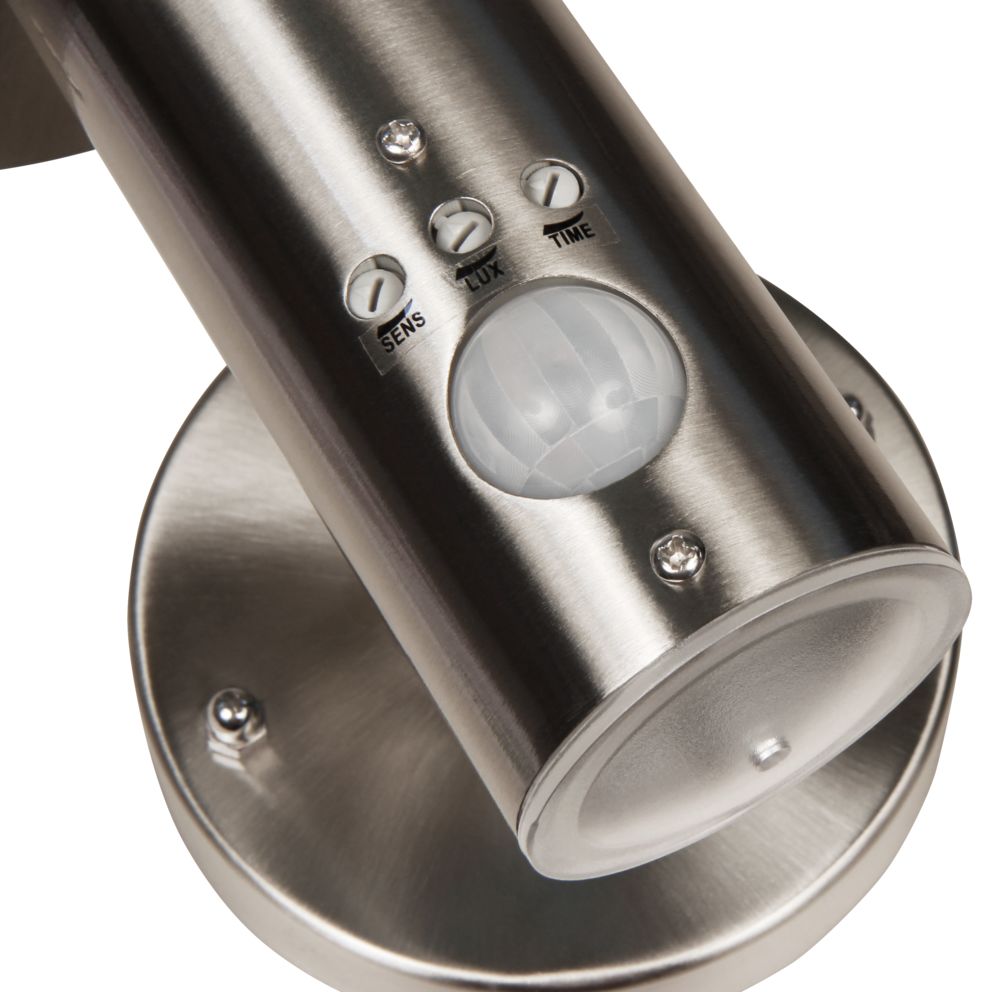 Wandleuchte McShine ''Zylinder'' Edelstahl, IP44, 1x E27, Bewegungsmelder