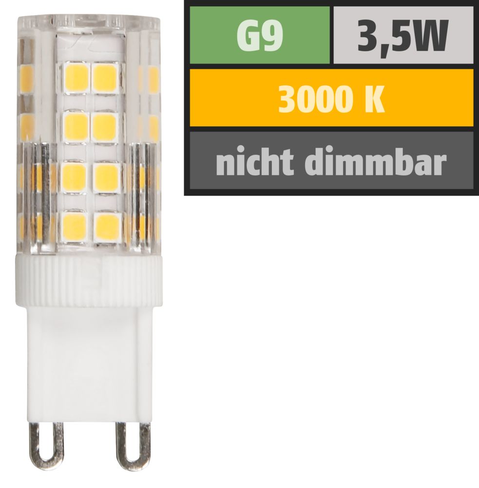 Der Artikel LED-Stiftsockellampe McShine, G9, 3,5W, 300lm, 3000K, warmweiß ist derzeit auf Lager