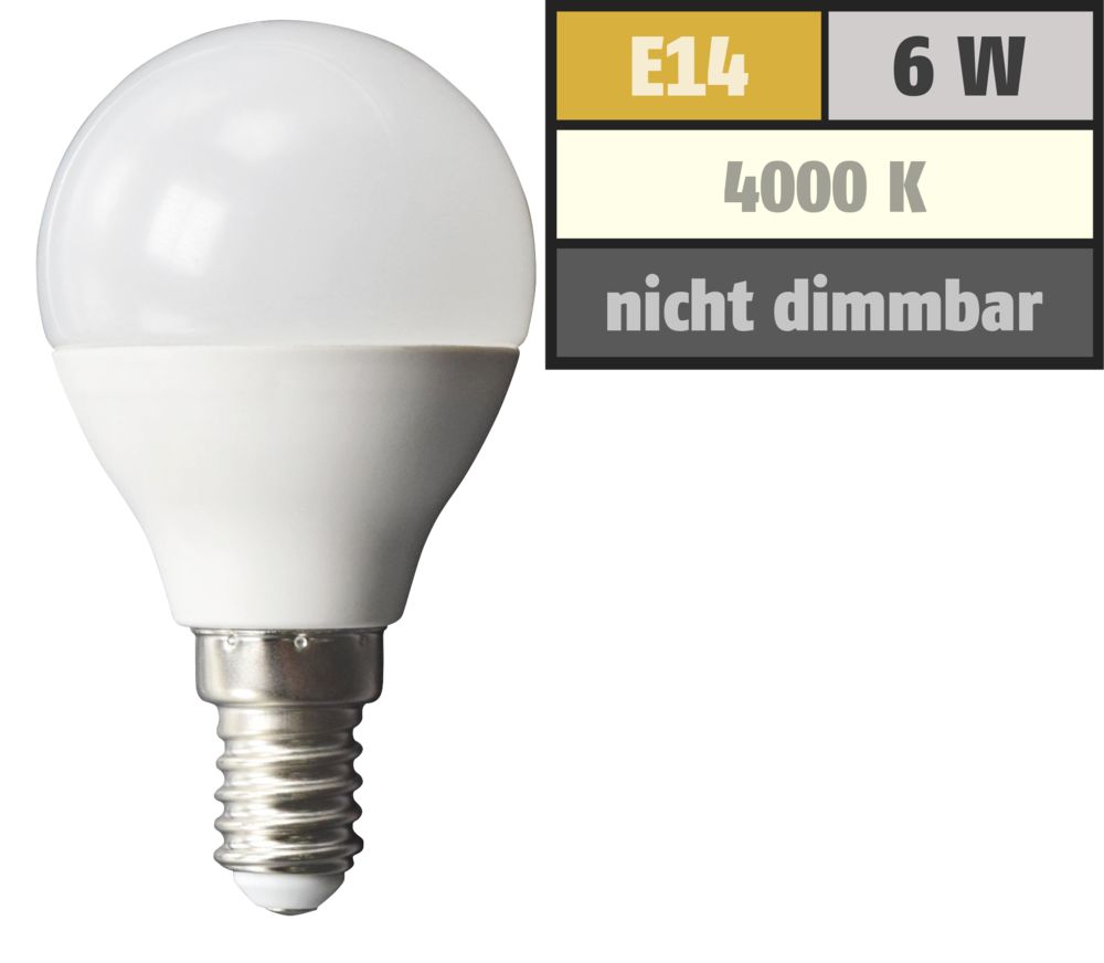 LED Tropfenlampe McShine, E14, 6W, 480lm, 160°, 4000K, neutralweiß, Ø45x78mm