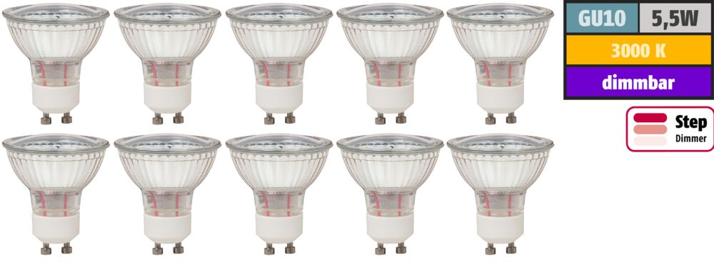 LED-Strahler McShine ''LS-1143 cm ( 450 Zoll ) GU10, 5,5W, 470lm, 3000K, step dimmbar, 10er-Pack