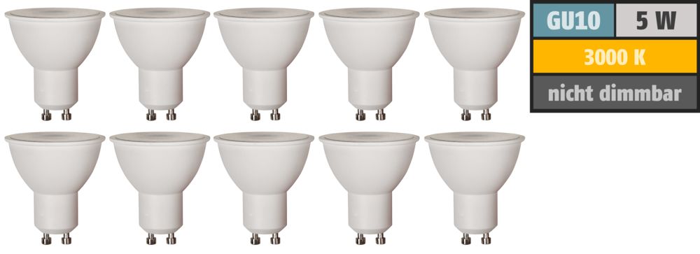 LED-Strahler McShine ''Brill241,3 cm ( 95 Zoll ) GU10, 5W, 400lm, 38°, warmweiß, Ra>95, 10er-Pack