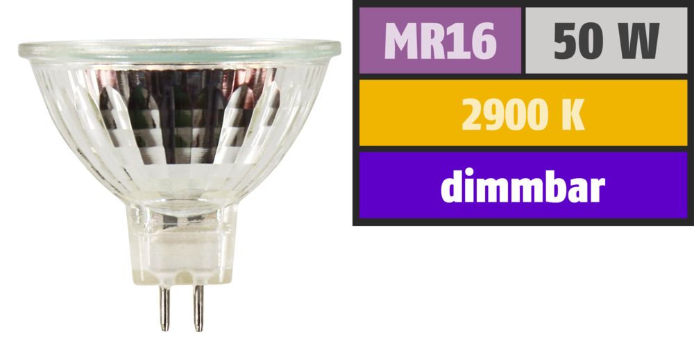 Halogen-Spiegellampe McShine, MR16, 50mm Ø, 12V/50W, 36° Flood, Frontglas