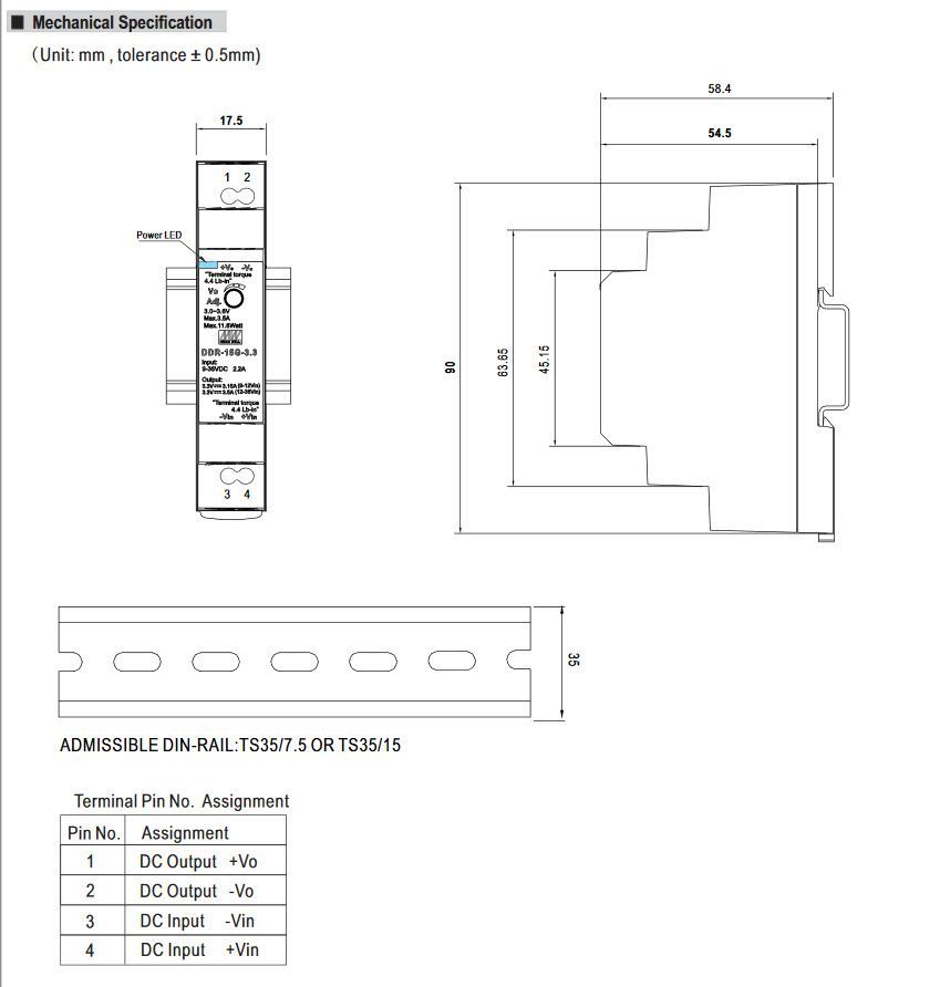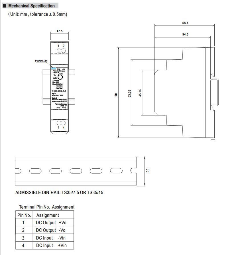 Passendes Zubehör für Meanwell DDR-15G-5 ALLNET Ersatznetzteil/Spannungswandler 5V/3A IN: 9~36VDC -> OUT: 5V DC/DC-Wandler Mean Well Hutschiene
