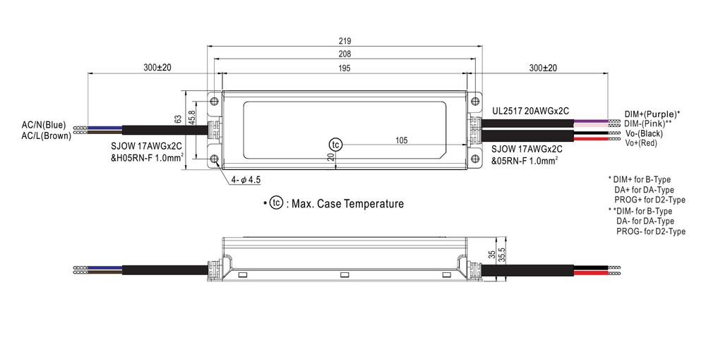 DALI Betriebstemperatur: -40°C bis +90°C LxBxH 219*63*35.5mm Schutzkennzeichen: MM genaue technische Details bitte dem Datenblatt entnehmen. Der Anschluss Elektrischer Bauteile und Anlagen darf grundsätzlich nur von qualifizierten Fachpersonal vorgenommen werden!