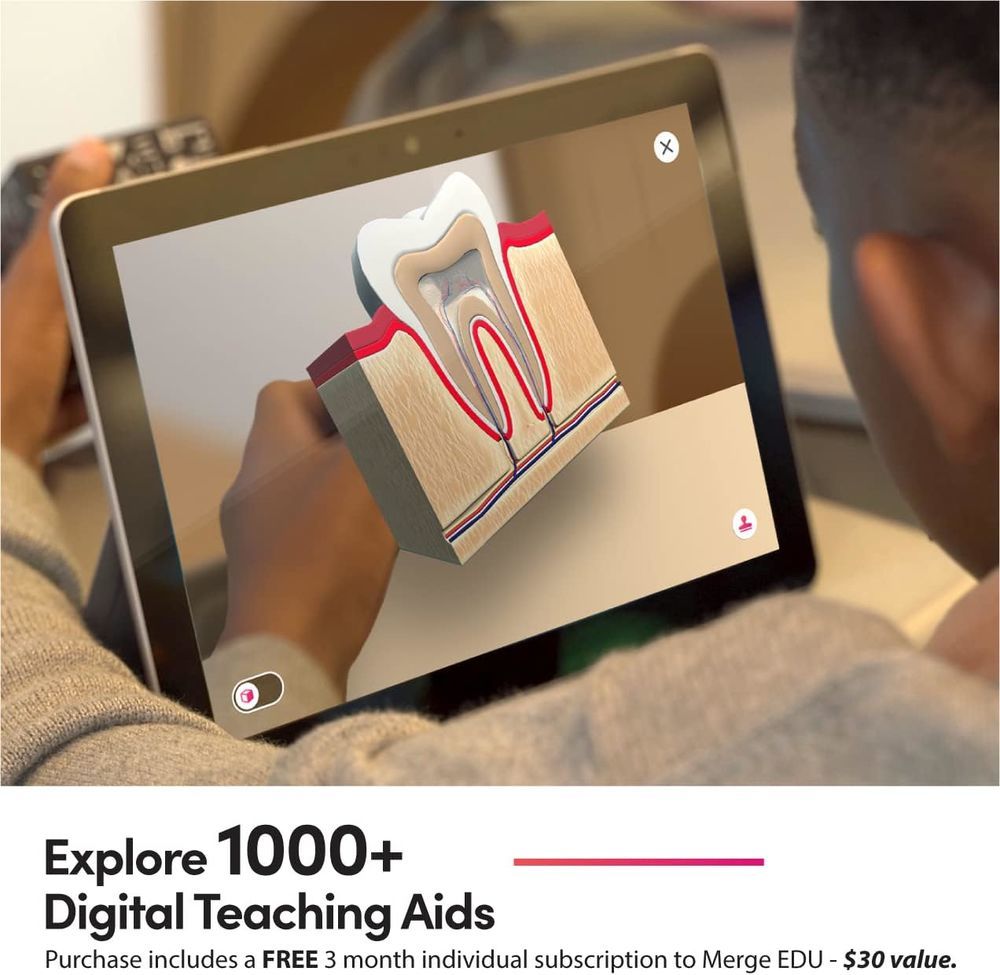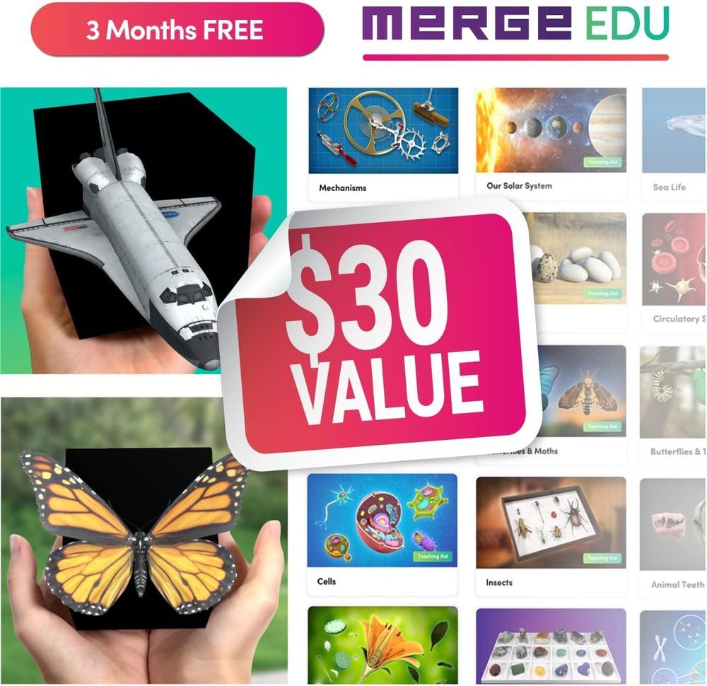 Der Merge Cube arbeitet mit Merge EDU , einer praktischen digitalen Lernplattform, mit der Schüler Wissenschaft und STEM effektiv mit 3D-Objekten und Simulationen lernen können, die sie berühren, halten und mit denen sie interagieren können.