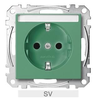 Merten MEG2302-0304 SCHUKO-Steckdose BRS Sonder mit Schriftfeld StK SV grün System M