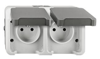 Merten MEG2520-8029 Doppelsteckdose lichtgrau mit Schutzkontakt+BRS AQUASTAR