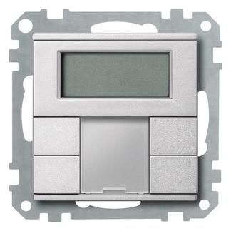 Tastsensor 2fach plus mit Raumtemperaturregler. Für System M. Komfortable Bedieneinheit mit 4 Bedientasten, Betriebs- und Statusanzeige und Beschriftungsfeld. Die Betriebsanzeige kann auch als Orientierungslicht verwendet werden. Mit Raumtemperaturregler und Display. Mit 5 roten LEDs. Der Raumtemperaturregler kann zum Heizen und Kühlen mit stufenlos einstellbaren KNX-Ventilantrieben oder zur Ansteuerung von Schaltaktoren und Heizungsaktoren verwendet werden. Mit dem weiß hinterleuchteten Display zur Anzeige von z.B. Uhrzeit, Datum, Temperatur und Betriebsart. Menü zur Einstellung von Standardbetriebsarten, Sollwert, Arbeits-/Nichtarbeitstag (externer Trigger), Anzeigemodus, Uhrzeit, Schaltzeiten und Helligkeit des Displays. Die Taster sind als Tasterpaare (Zweiflächen) oder als Einzeltaster frei parametrierbar. Mit integriertem Busankoppler. Der Busanschluss erfolgt über eine Busanschlussklemme. Funktionen der Drucktasten: Schalten, Umschalten, Dimmen, Jalousiesteuerung (relativ oder absolut), Impulsflanken lösen 1-, 2-, 4- oder 8-Bit-Telegramme aus (Unterscheidung zwischen kurzer und langer Betätigung). Impulsflanken mit 2-Byte-Telegrammen (Unterscheidung zwischen Kurz- und Langbetrieb), 8-Bit-Linearregler, Szenenabruf, Szenenspeicherung, Sperrfunktionen. Zeitsteuerung mit Synchronisation, Benachrichtigungsfunktionen, zyklisches Einlesen von externen Temperaturwerten, Lüftersteuerung, Betriebsarten, Sollwertverschiebung. Funktionen des Raumtemperaturreglers: Reglerart: 2-Punkt-Regelung, stetiger PI-Regler, schaltender PI-Regler (PWM). Ausgang: kontinuierlich im Bereich 0 bis 100% oder schaltend ON/OFF. Betriebsart Regler: Heizen mit einem Reglerausgang. Kühlen mit einem Reglerausgang. Heizen und Kühlen mit getrennten Reglerausgängen. Heizen und Kühlen mit einem Reglerausgang. 2-stufiges Heizen mit 2 Regelausgängen. 2-stufiges Kühlen mit 2 Regelausgängen. 2-stufiges Heizen und Kühlen mit 4 Regelausgängen. Betriebsarten: Komfort, Komfortverlängerung, Standby, Nachtabsenkung, Frost-/Hitzeschutz. Verschieben aller Sollwerte, Speichern aller Solltemperaturen und Betriebsarten bei Reset, externe Temperaturüberwachung, zusätzliche Ausgabe der Stellgröße als 1 Byte Wert auf der PWM. Mit Busanschlussklemme und Trägerplatte. Schraube für Demontageschutz. Mit Schutzhaube für Gips. Material: Thermoplast edel matt. Farbe: Aluminium.