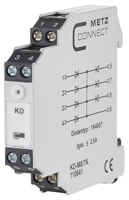 Metz Connect 110641 BTR KD-M8/7K Diodenmodul 7 Dioden gemeinsame Kathode wird bei uns in einer Verkaufseinheit (VE) mit 10 Stück angeboten. Sollten Sie eine größere Menge benötigen, können Sie sich jederzeit an uns wenden. Wir unterbreiten Ihnen für die gewünschte Menge gerne ein Angebot