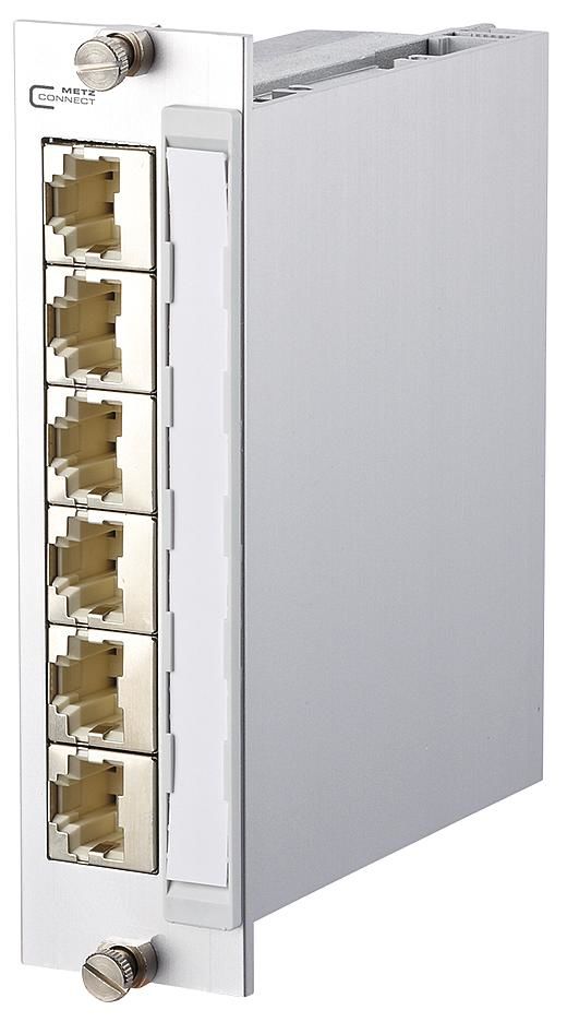- 19´´ 3HE/7TE Modul mit 6 einzelgeschirmten RJ45-Buchsen für 19l5 Modulträger 3HE