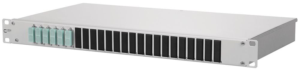 Metz Connect 150255BA06-E BTR OpDAT fix 6xSC-D OM3 Keramik aqua bestückt 19z 1HE Patchfeld