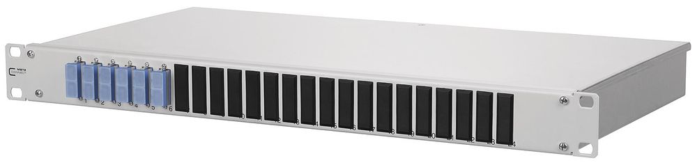 Metz Connect 150259E206-E BTR OpDAT fix 6xSC-D SM OS2 Keramik blau bestückt 19z 1HE Patchfeld