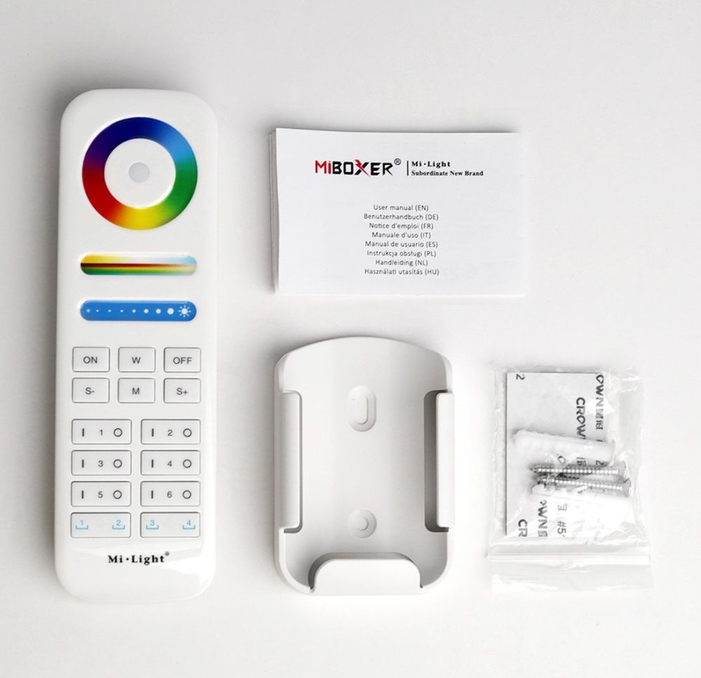 Der Artikel Synergy 21 LED Fernbedienung RGB-WW (RGB-CCT) 6 Zonen + 2 Szenen *Milight/Miboxer* ist derzeit auf Lager