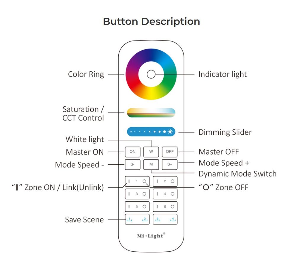 Synergy 21 LED Fernbedienung RGB-WW (RGB-CCT) 6 Zonen + 2 Szenen *Milight/Miboxer*