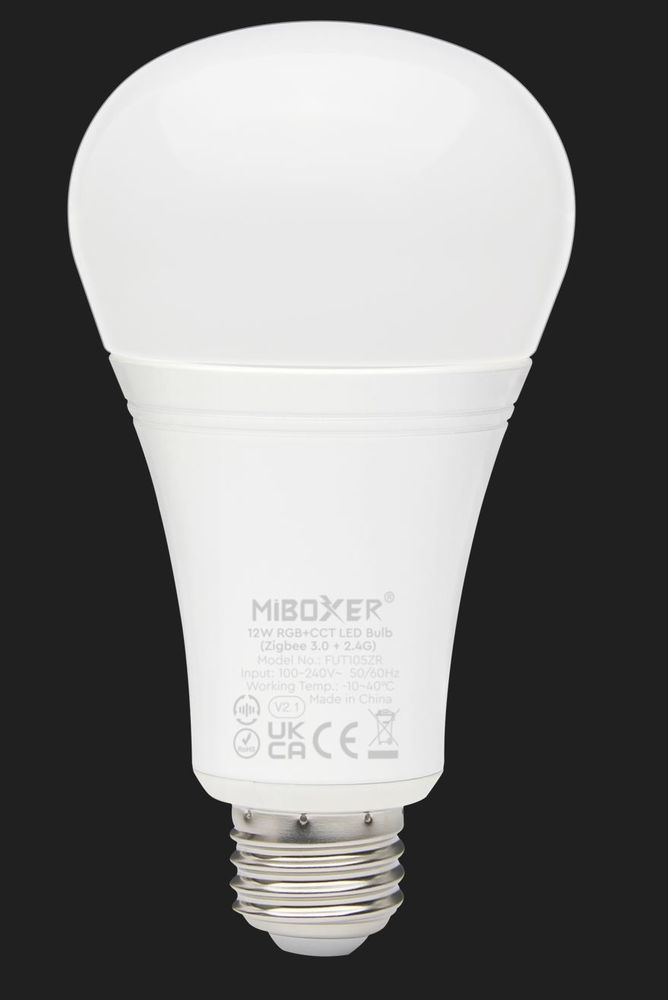 Der Artikel Synergy 21 LED Retrofit E27 Bulb 12W RGB-WW Lampe mit Funk und Zigbee 3.0 *Milight/Miboxer* ist derzeit auf Lager