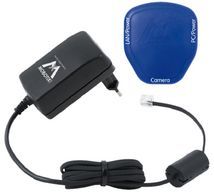 PoE-Injektor inkl. Crossover-Funktion für direkten PC-Anschluss Mit Netzstecker für Europa Für alle MOBOTIX Kameras (außer M1 und M10), Mx2wire+ und alle PoE-Endgeräte PoE-kompatible Stromversorgung (IEEE 802.3af) für direkten Anschluss an PC und Kamera Set beinhaltet blauen Adapter mit 3 Buchsen RJ45 und Mehrbereichsnetzteil mit RJ45-Stecker