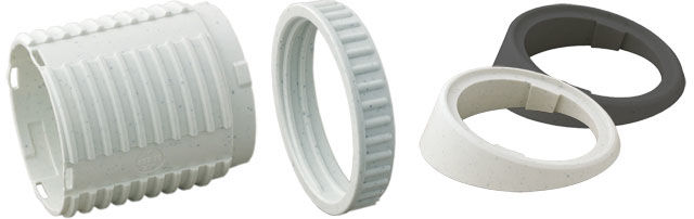 Komplett-Set zur Wand- oder Deckenmontage eines Sensormoduls mit 15°-Neigung Inkl. Verlängerung für größere Einbautiefen Passend für alle Sensormdule der S1x 1x Verlängerung 40 mm 2x 15°-Keile (weiß und schwarz) 2x Keil-Dichtringe 1x Kontermutter