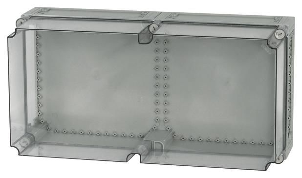 Total isoliert IP 65, ohne Montageplatte, oben und unten großflächige Durchbrüche sowie Öffnungen zur Aufnahme der Keilverbindung. Seitenwände geschlossen, ausbrechbar. Montage der Gehäuse im Verteilerverband mittels Keilverbindung.