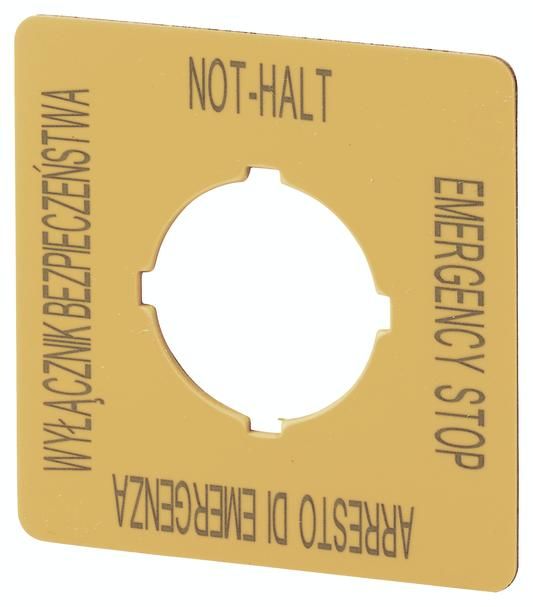Moeller 167643 EATON M22-XYK5 Schild NOT-AUS 50x50mm gelb PL EN DE IT