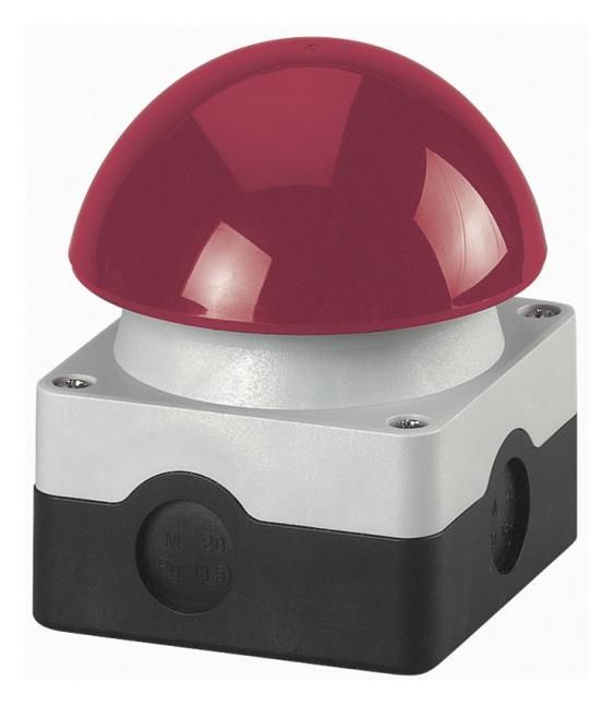 Gehäuseunterteil schwarz (RAL 9005), Gehäuseoberteil hellgrau (RAL 7035). Öffner mit Sicherheitsfunktion durch Zwangsöffnung nach IEC/EN 60947-5-1. Pilzstößel in schwarz oder rot