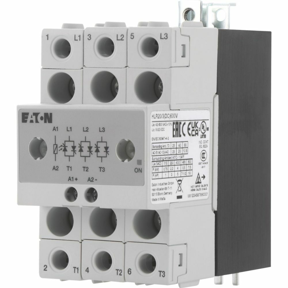 Der Artikel Moeller 360046 EATON HLR20/3(DC)600V Halbleiterrelais, 3-phasig, 20 A, 42 - 660 V, DC ist derzeit nicht auf Lager und muss auftragsbezogen bestellt werden.