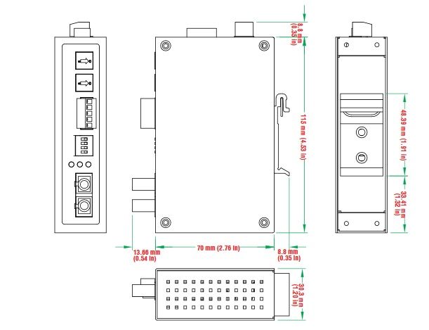 - Anschluss: 5-poliger Terminalblock (seriell), SC-Stecker (Multimode)