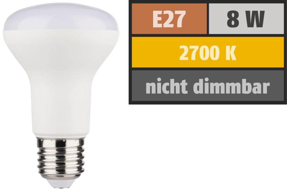 Der Artikel Muellerlicht ETT-1451831 LED Reflektor R63, E27, 8W, 806lm, 2700K, warmweiß ist derzeit auf Lager