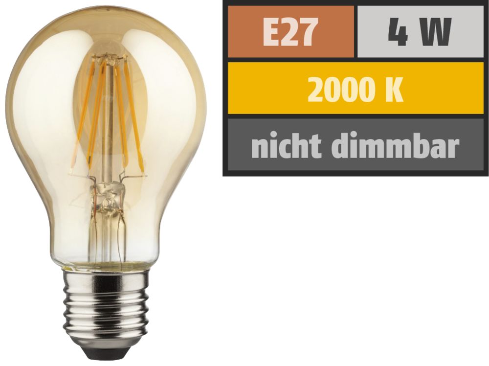Der Artikel Muellerlicht ETT-1451898 LED Filament Glühlampe, E27, 4W, 400lm, 2000K, warmweiß, gold ist derzeit auf Lager