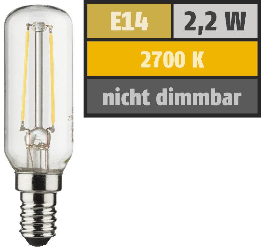 Muellerlicht ETT-1451922 LED Filament Röhrenform, E14 / T25, 2,2W, 250lm, 2700K, warmweiß