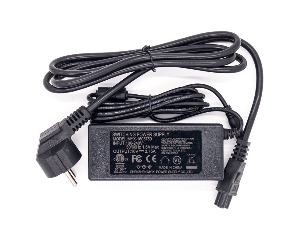 Input: AC 100 - 240 V, 50/60 Hz, max 1,5 AOutput: 16 V DC, max. 3,75 A