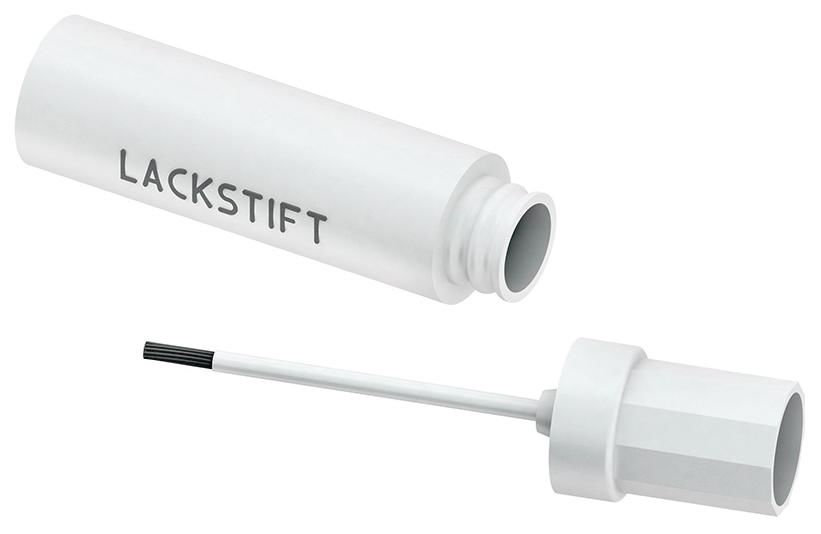 Lackstift, in Farbton reinweiß RAL 9010 gemäß Farbtabelle des Herstellerkataloges, zum Ausbessern kleinerer schadhafter Stellen an elektrostatisch pulverbeschichteten Produkten.