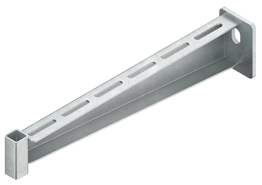 Wandausleger, für die Verlegung von Kabelrinnen und Kabelleitern mit einer zusätzlichen Gewindestangenabhängung, tauchfeuerverzinkt nach DIN EN ISO 1461, einschließlich galvanisch verzinkten anteilmäßigem Befestigungszubehör. Zur Verwendung im Funktionserhalt bitte Zusatzvorschriften beachten!