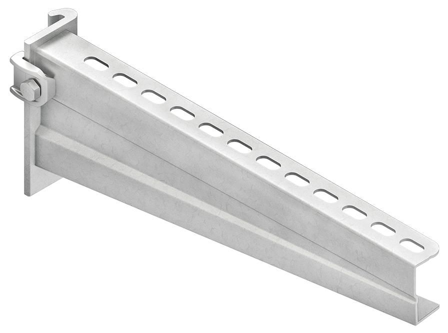 Ausleger, schwer, für Hängestiel System HI 80/..., tauchfeuerverzinkt nach DIN EN ISO 1461, Befestigungszubehör für Kabelrinnen/-leitern bzw. Weitspannkabelrinnen/-leitern muß gesondert bestellt werden.