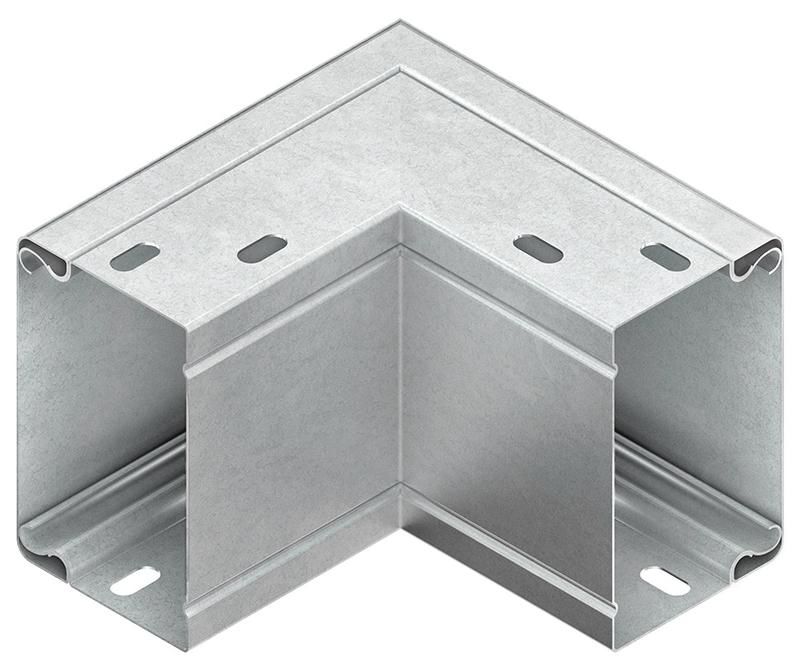 Leitungsschutzkanal-Inneneck 90ø, mit Deckel, aus bandverzinktem Stahl nach DIN EN 10346, mit Schraubverbinderlochung für LS-Industriekanal LI... und LUE..., 2 Universalverbinder LIV 60 müssen gesondert bestellt werden. VDE zertifiziert!