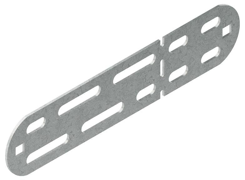 Universalverbinder, asymmetrisch, formbarer Schraubverbinder für LS-Industriekanäle LUE... und LI..., bandverzinkt nach DIN EN 10346, zur Herstellung der mechanischen und elektrischen Verbindung der Kanalunterteile und Formstücke, auch als Gelenk- und Winkelverbinder einsetzbar, einschließlich anteilmäßigem Befestigungszubehör. VDE zertifiziert!