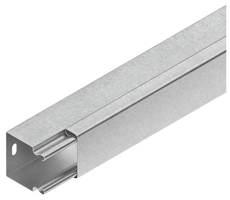 LS-Kanal, komplett, einschließlich aufrastbarem Deckel, Kanal mit Befestigungslochung im Boden, aus bandverzinktem Stahl nach DIN EN 10346, zwei Stoßstellenverbinder LST... je Stoßstelle müssen gesondert bestellt werden. VDE zertifiziert!