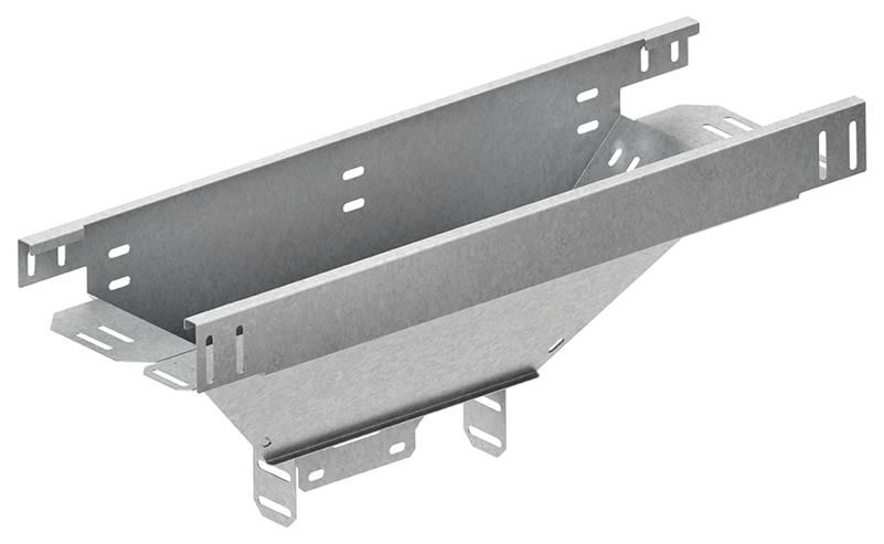 Abgangstrichter in Längsrichtung, für Kabelrinnen mit 60 mm Kantenhöhe, für den senkrechten Abzweig längs der Hauptrichtung, bandverzinkt nach DIN EN