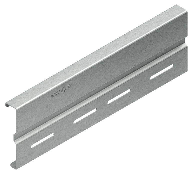 Stoßstellenverbinder, für Weitspannkabelrinnen und -leitern, für eine an der Stoßstelle formschlüssig in Längsrichtung fluchtende Verbindung der Weitspannkabelrinnen/-leitern und Formstücke, bandverzinkt nach DIN EN 10346, einschließlich tauchfeuerverzinkten anteilmäßigem Befestigungszubehör.