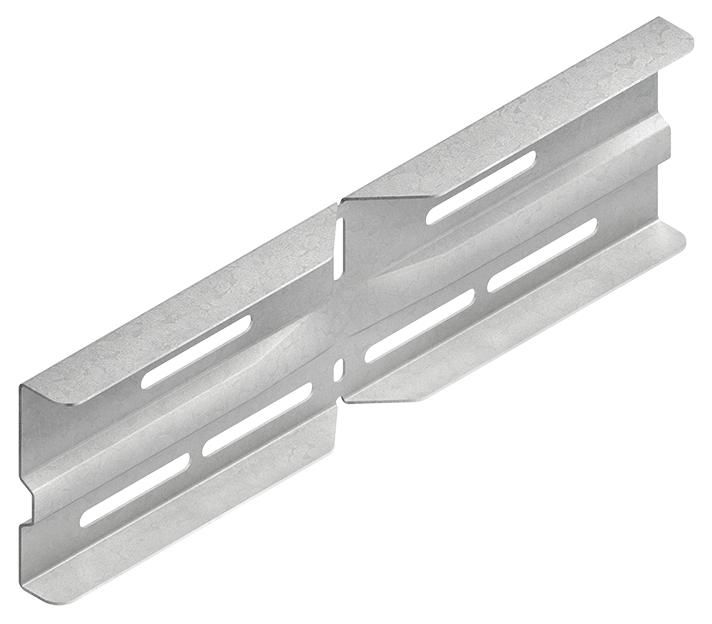 Gelenkverbinder, horizontal, für Weitspannkabelrinnen und -leitern, zur Herstellung von horizontalen Winkelverbindungen von durchlaufenden Weitspannkabelrinnen/-leitern, bandverzinkt nach DIN EN 10346, einschließlich tauchfeuerverzinkten anteilmäßigem Befestigungszubehör.