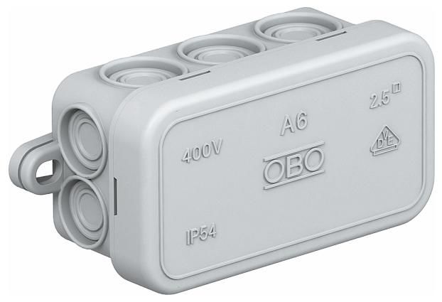 Der Artikel OBO Bettermann 2000001 OBO A 6 Kabelabzweigkasten 80x43x34 lichtgrau ist derzeit auf Lager